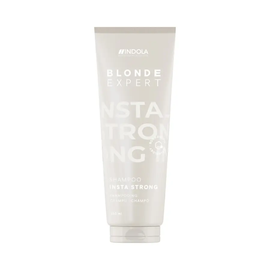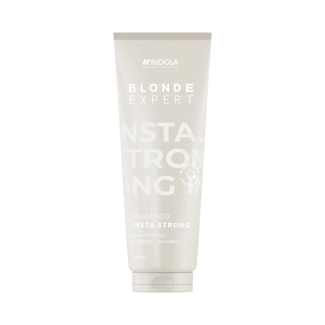 Indola Blonde Expert Instastrong shampoo gently cleanses lightened and damaged hair, while strengthening their structure and protecting them from breaking.