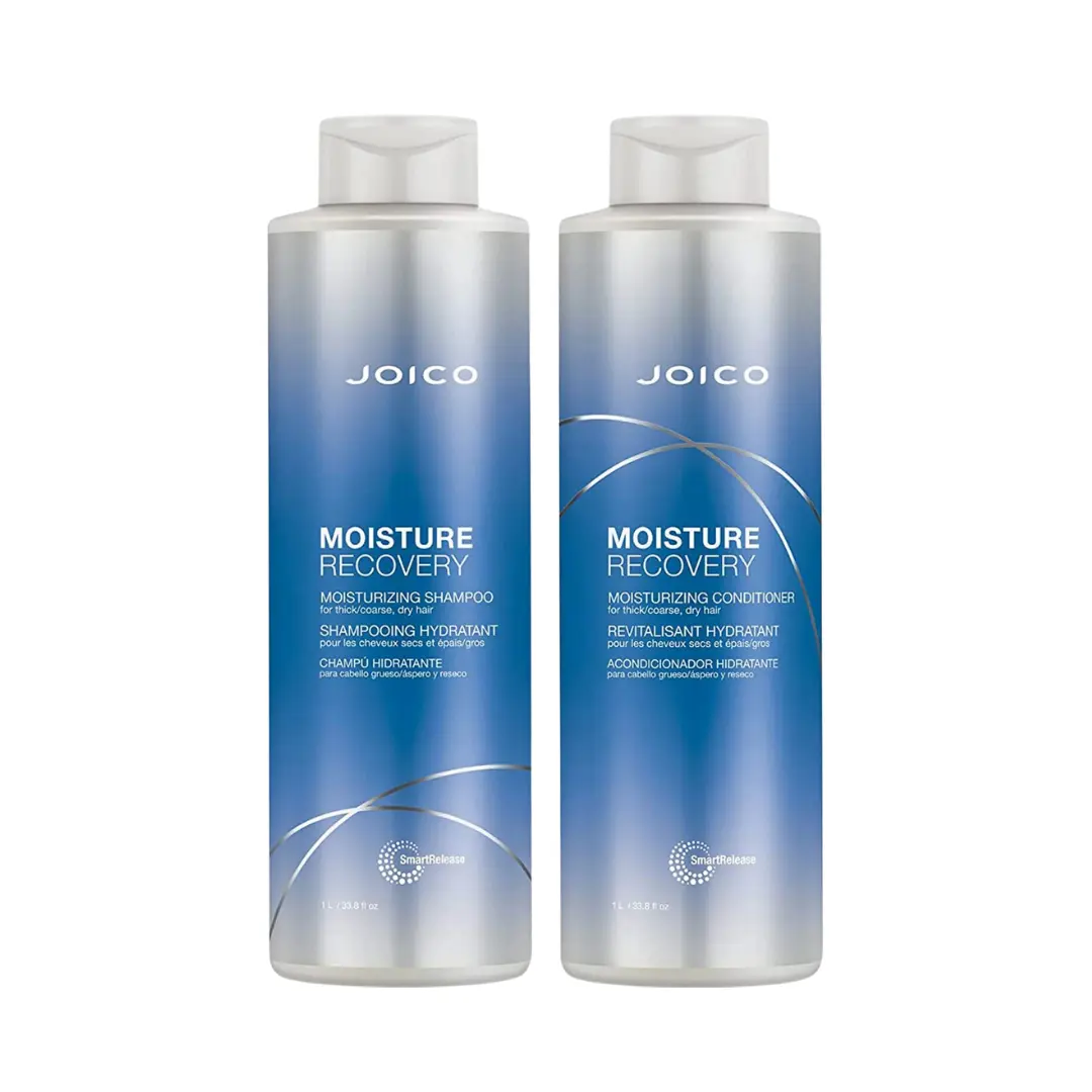 The set contains: Joico Moisture Recovery Shampoo 1000 ml + Joico Moisture Recovery Conditioner 1000 ml