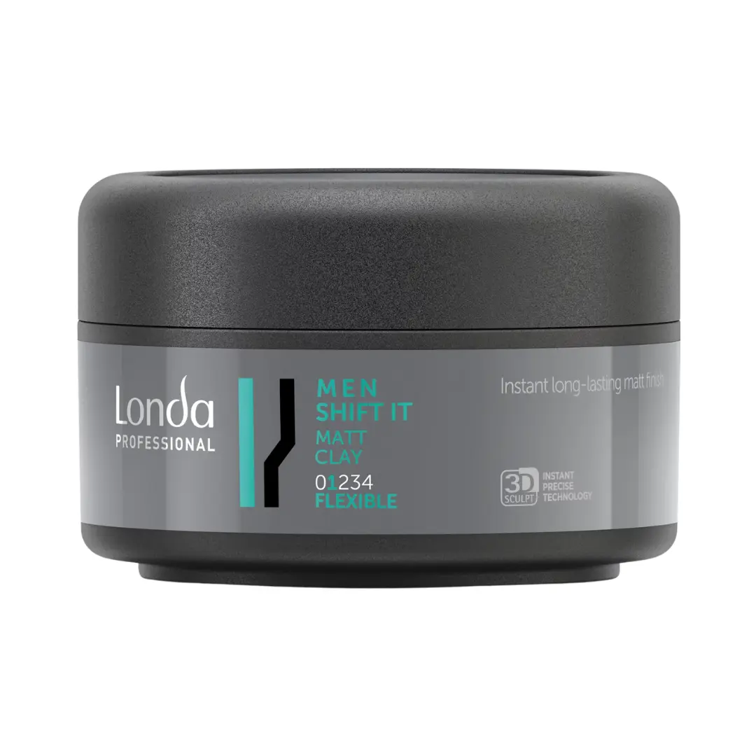 Londa Shift It Matt Clay Mattifying Paste for flexible hold gives the hairstyle a matt look and a long-lasting strong hold. Creates long-lasting shape, texture and definition. Provides unlimited shaping possibilities.