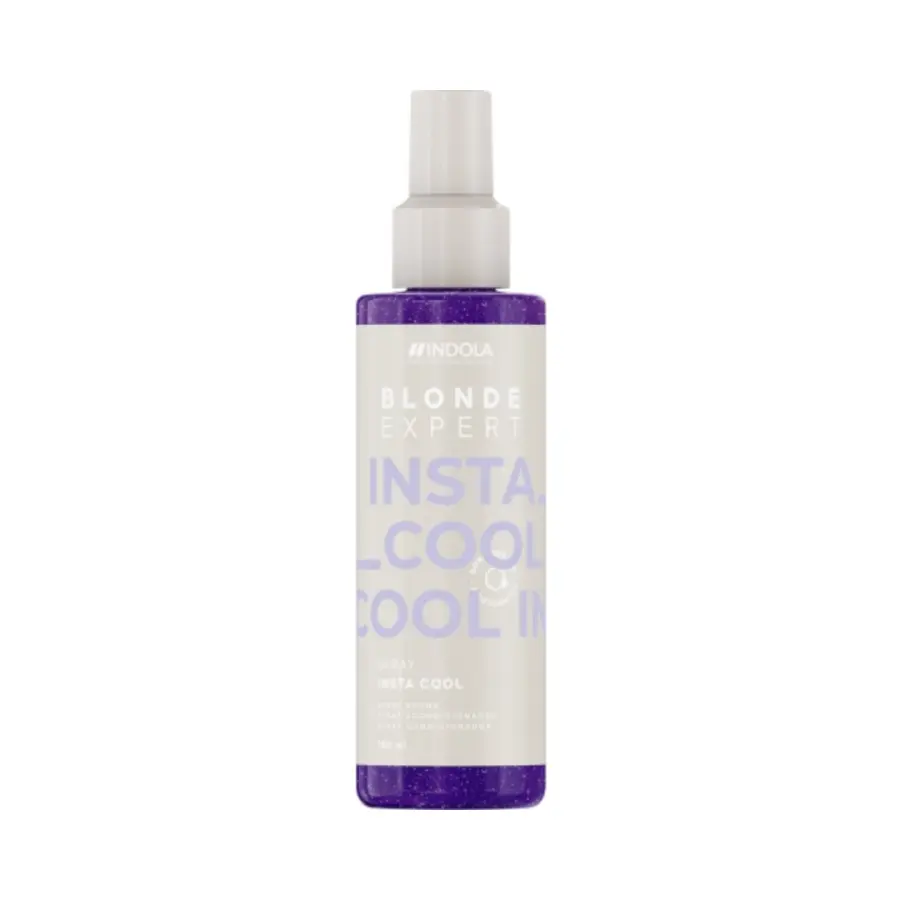 Indola Blonde Expert Care Instacool Spray neutralisiert unerwünschte Gelbtöne und verleiht blonden Haaren einen kalten, hellen Farbton.