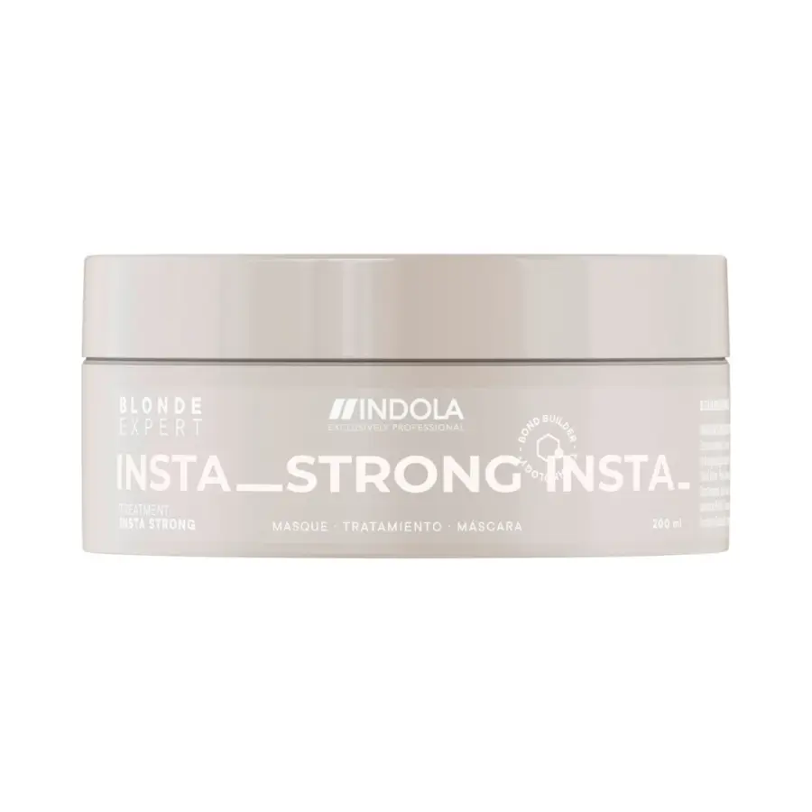 Maske Indola Blonde Expert Care Instastrong stellt geschädigtes blondes Haar nach dem Aufhellen wieder her und stärkt es.