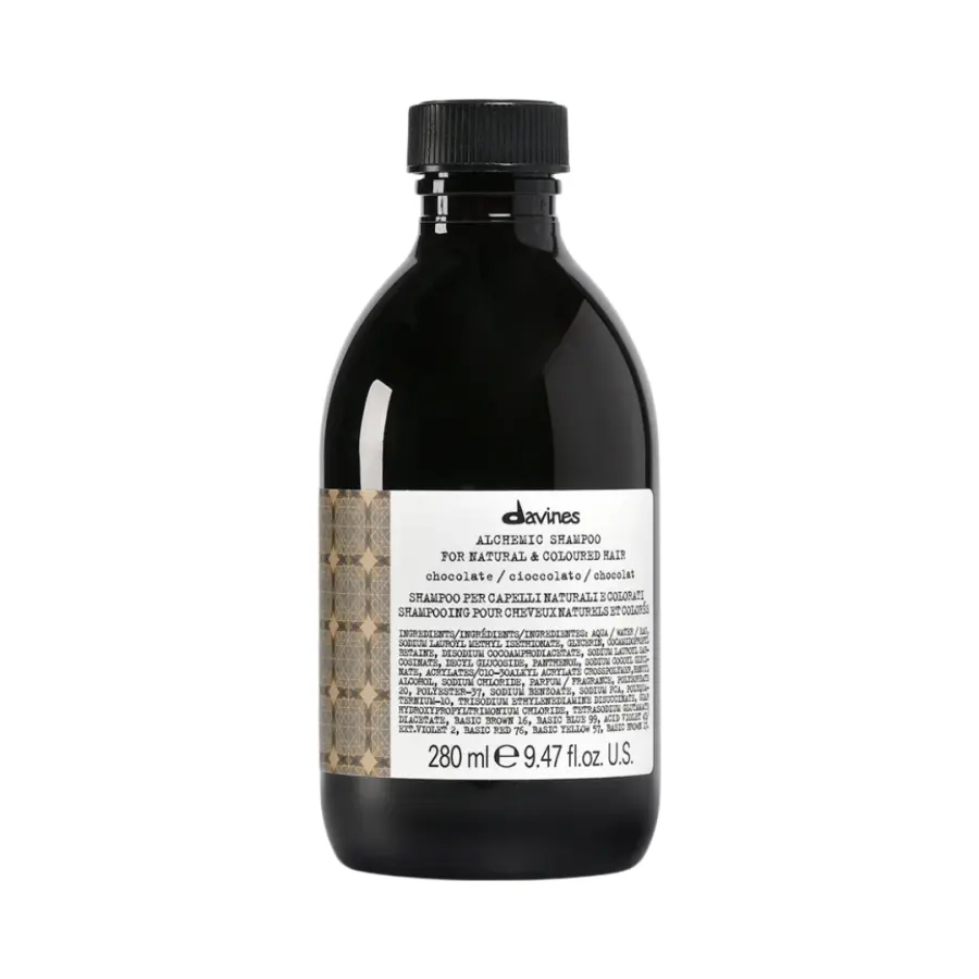 El champú Davines Alchemic Chocolate resalta los tonos marrones y le da al cabello un tono rico y cálido.