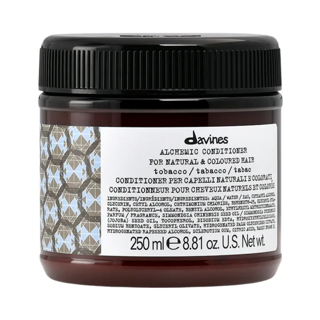 El acondicionador alquímico de tabaco le da profundidad, nutrición y brillo al cabello castaño cálido.