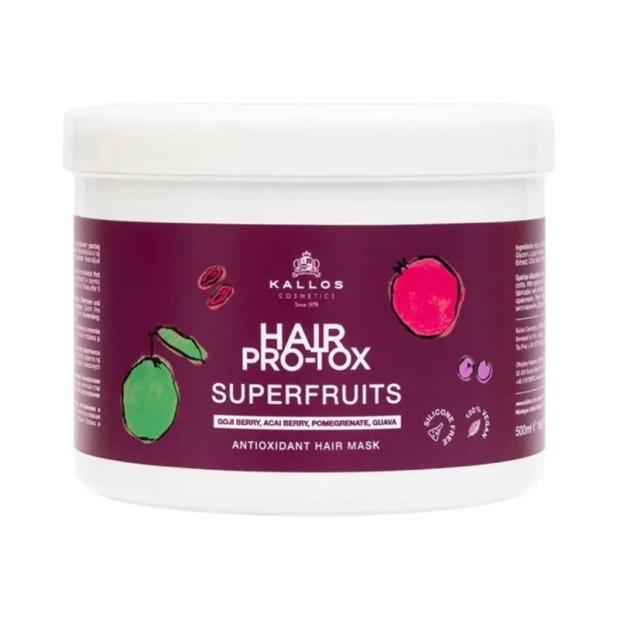 La mascarilla capilar Kallos Hair Pro-Tox Superfruits contiene un componente frutal rico en antioxidantes, vitaminas y minerales que devuelven al cabello su aspecto y brillo originales y saludables. Con el uso de la mascarilla, el cabello se vuelve más resistente a las influencias nocivas del medio ambiente, manteniéndolo hidratado y suave.