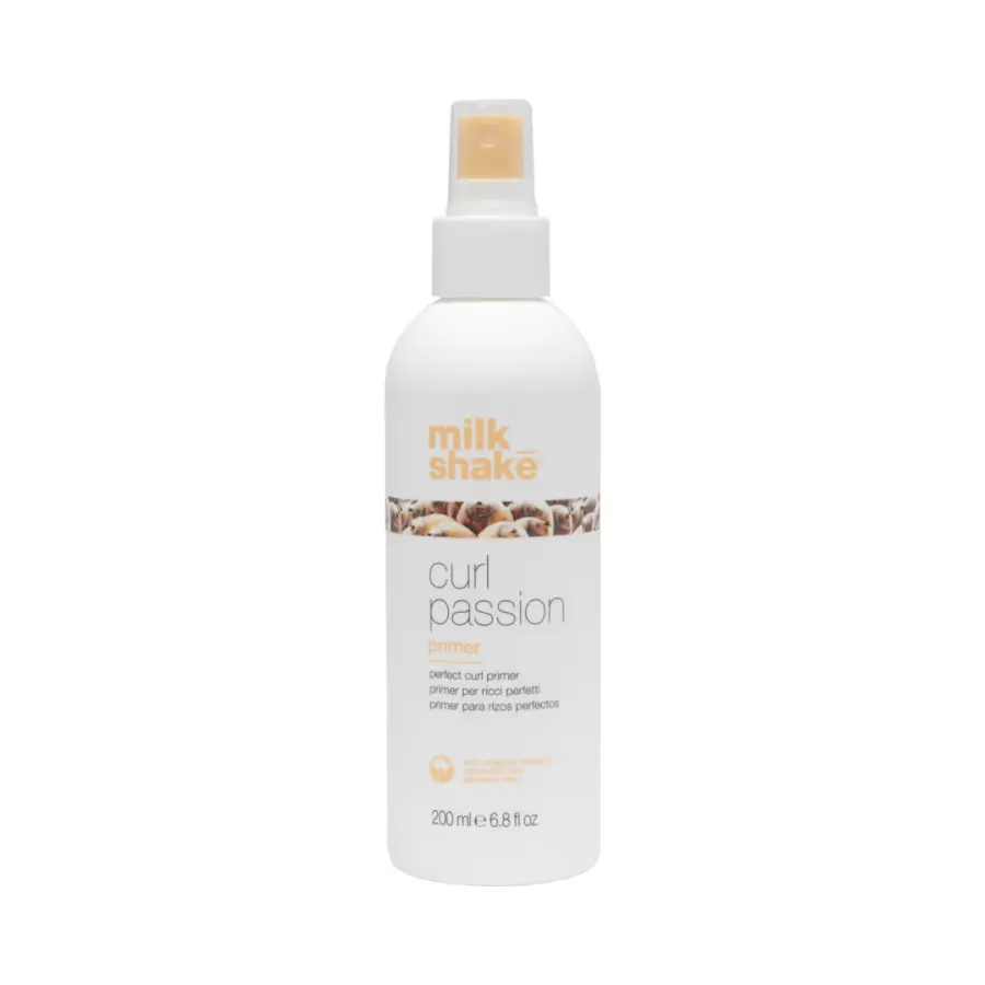 Milk_shake Curl Passion Primer es una prebase de peinado para cabello rizado y ondulado que prepara el cabello para peinarlo, mejora la definición de las ondas y protege contra el frizz.