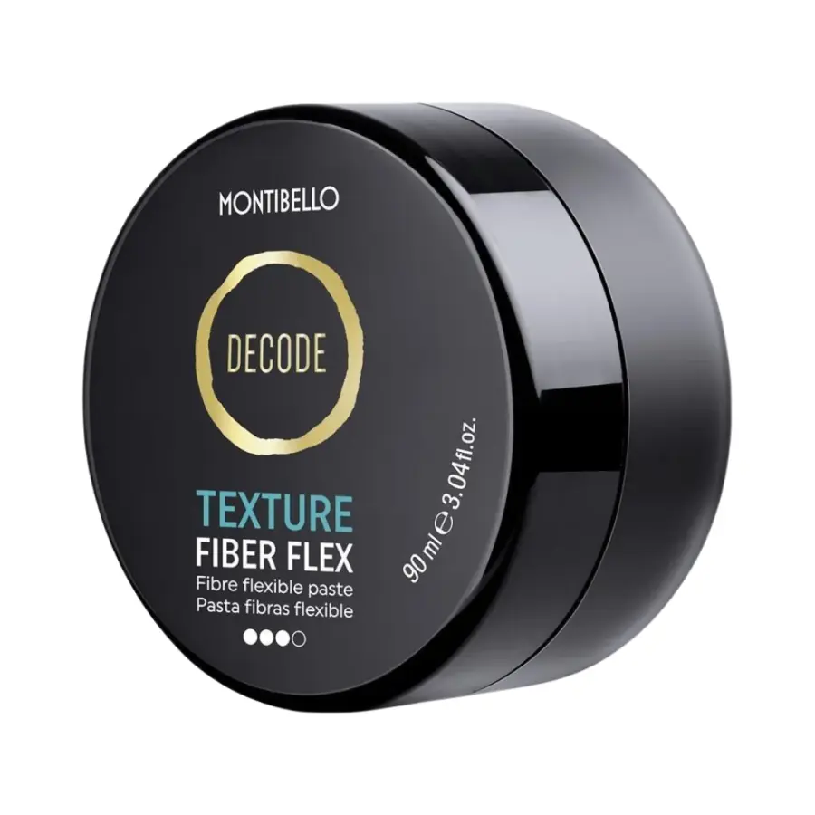 MONTIBELLO Decode Texture Fiber Flex es una pasta de peinado flexible con una textura fibrosa.