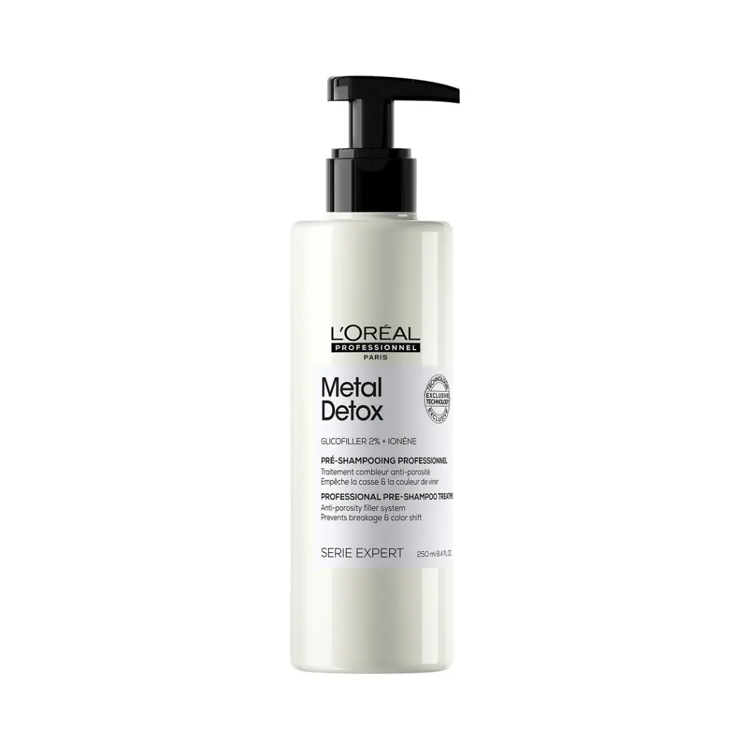 L'Oréal Professionnel Serie Expert Metal Detox Pre-Shampoo Treatment est conçu pour être utilisé avant le lavage des cheveux. La formulation unique de ce traitement enrichi en Ionéne et en substances Glycofiller qui agissent à la surface de la fibre capillaire et après son utilisation, les cheveux sont moins poreux, plus forts et moins cassants. Il donne aux cheveux du volume, de l'hydratation jusqu'à 72 heures. Les cheveux sont lisses et doux après utilisation.