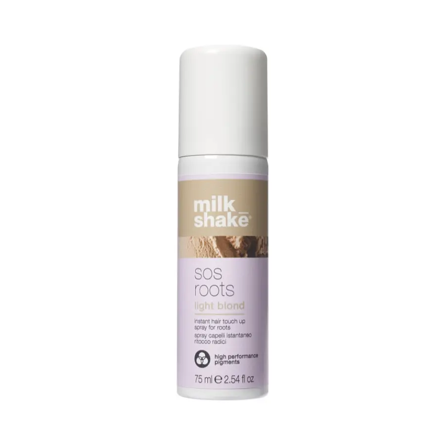 Milk_shake SOS Roots Light Blonde est un spray pour couvrir instantanément les excroissances dans une nuance de blond clair, qui unifie la couleur des cheveux en quelques secondes.