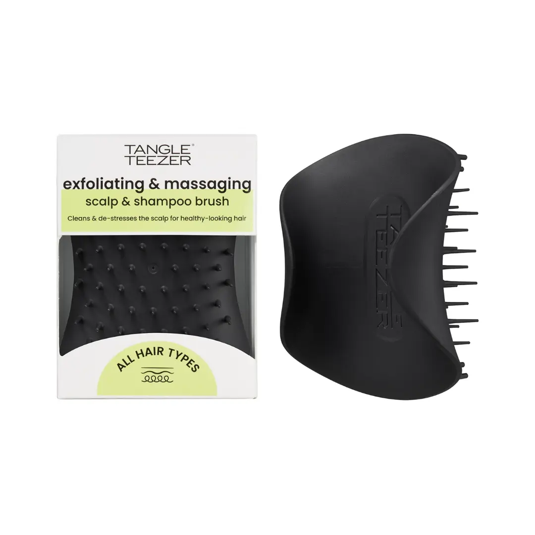 TANGLE TEEZER Scalp Brush Onyx Black est une brosse de massage du cuir chevelu conçue pour un nettoyage et une stimulation efficaces tout en lavant vos cheveux.