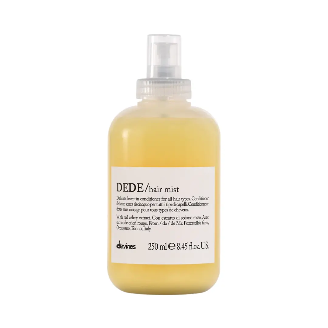DAVINES DEDE Hair Mist è uno spray idratante leggero, senza risciacquo, progettato per la cura quotidiana di tutti i tipi di capelli.