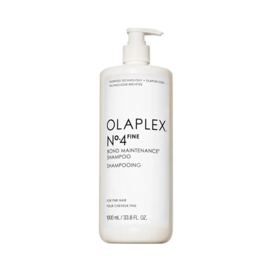 Olaplex No. 4 Fine Bond Maintenance shampoo deterge delicatamente i capelli fini e li rafforza senza alcun carico.