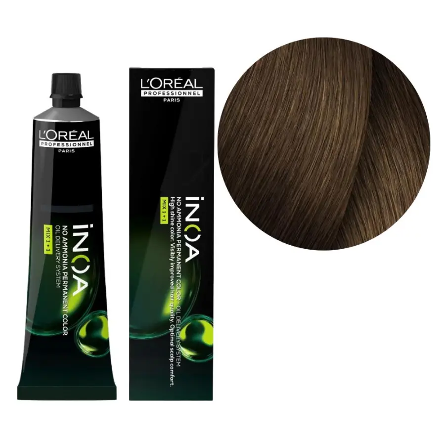 L'Oréal Professionnel Inoa Permanent Hair Dye 60g now has a new formula with better results. This ammonia-free hair color offers a permanent coloring solution with optimal results and great comfort. Indeed, this new formula has some characteristics that differ from the old one. First of all, the composition is vegan, without ingredients of animal origin. Second, it's a liquid formula, so it's quicker and easier to apply and lengthen, as well as blend and rinse. Third, this new formula offers 48% more shine than the previous one. Finally, it presents a more sustainable image with a tube made from 95% recycled aluminium. At the same time, this formula is characterized by an exclusive patent ODS (Oil Delivery System) with 60% oil, which guarantees impressive color, shine and comfort of the scalp.