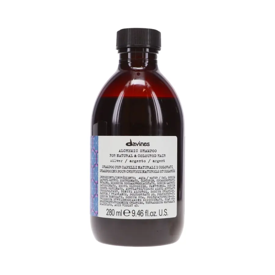 Davines Alchemic Silver shampoo gently neutralizes yellow tones and revitalizes cold shades of hair.
